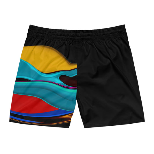 Abstract Wave Swim Shorts — Colorful Striped Men's Mid-Length Beach Trunks
